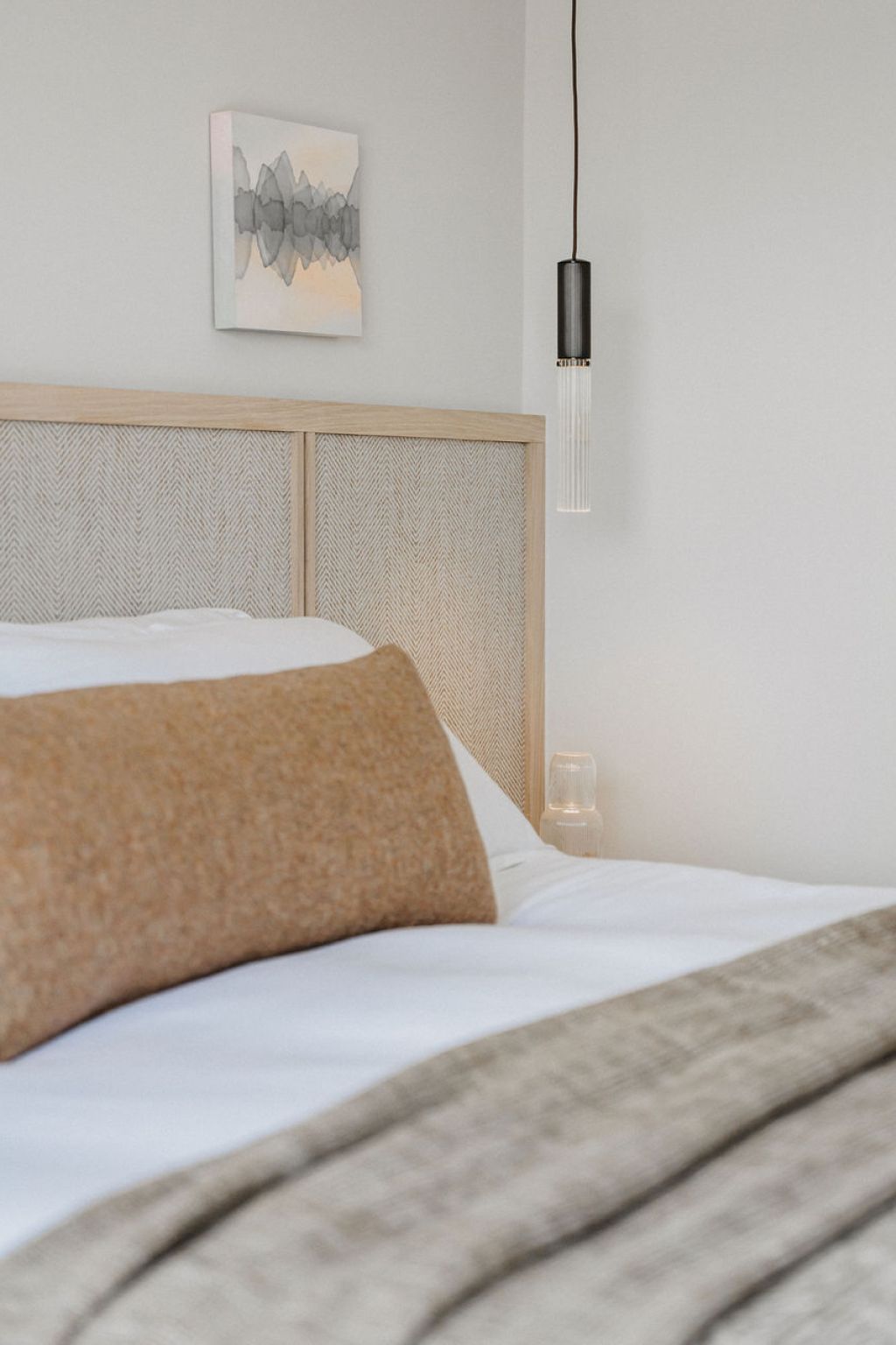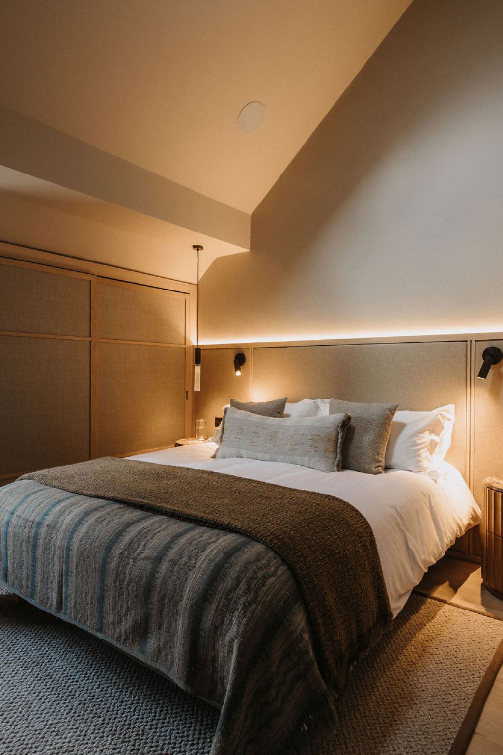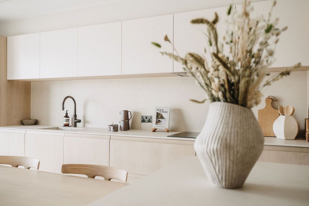 This coastal holiday home was thoughtfully redesigned to transform a dated 1990s layout into a light-filled, tranquil retreat. By reconfiguring key spaces to maximise sea views and natural light, and introducing vaulted ceilings, bespoke joinery, and a soft, natural palette, we created a home that feels both elevated and effortless.